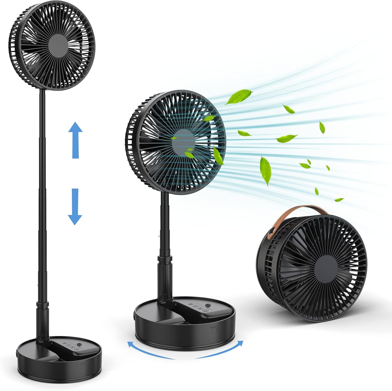• 【Foldable & Portable】Unique folding design,With Build in Hand Strap Folded Height 3.7X8 inches and weight 2.6lb. Adjustable Height from 14.2 inch to 3.3ft, Foldable table fan to floor fan,but still portable for home and office, laptop, gym workout, car backseat, outdoors, camping, trips and anywhere need cool wind